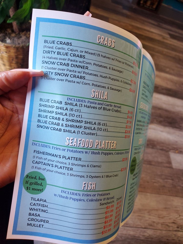 Fish (of your choice) Shrimp Crab, OystersW/ hush puppies, & coleslaw.